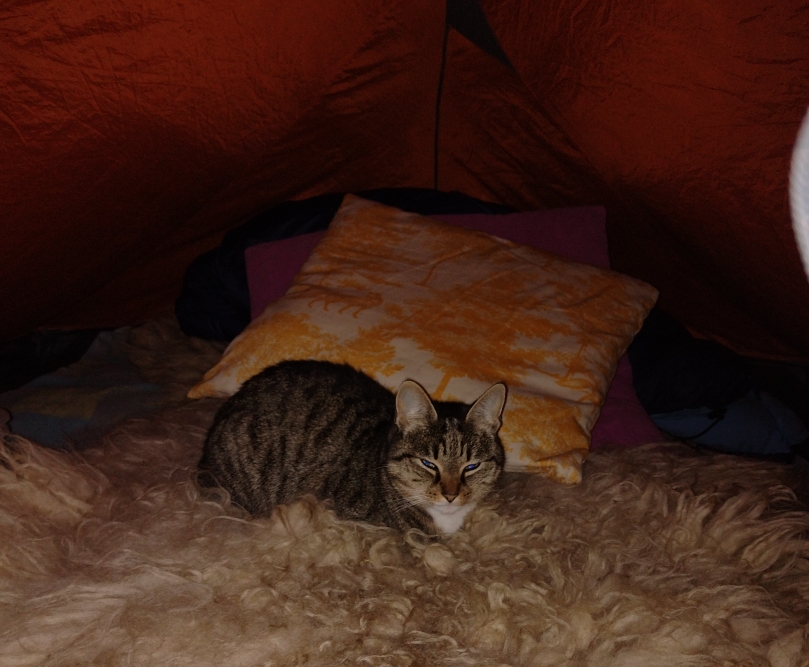 En nu zelf opnieuw starten. In een tent. In het bos. Op een plek waarvan ik helemaal niet weet hoelang ik er mag staan. Ver weg van Achterveld, het dorp waar ik opeens gehecht aan ben geraakt. Het is eng maar daardoor ook kicken. Een nieuw groot avontuur staat voor de deur! Ik keek net nog even de kamer met spulletjes door die ik hier laat, en mijn twee lieve poezen kwamen bij me zitten. Toen kwamen de tranen echt. Deze twee meiden waren echt mijn bakens, mijn thuis, mijn warmte, mijn veiligheid. En ook hen laat ik achter. Dag lieve Puk en Guus, ik zie jullie volgende week weer als ik m’n lievelingszus bezoek :).