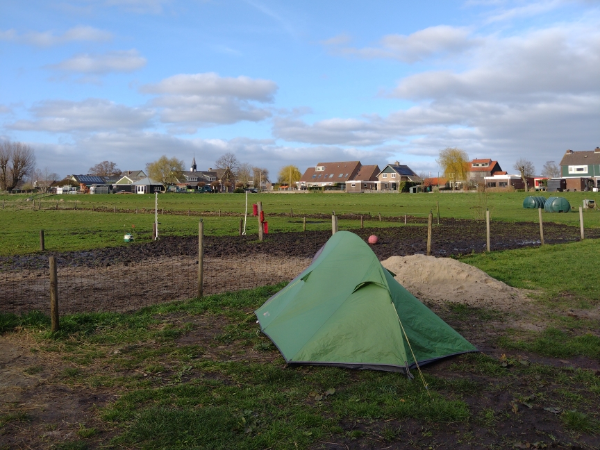 Mijn moeder en ik liepen de Utrechtse Heuvelrughike in weekendjes in maart. Zora en ik liepen een stukje Veluwepad in maart. Dat was nat en grauw, maar ook heerlijk om weer lekker op pad te zijn (en in B&B’s te slapen, hihi!). Ik kreeg de wandelsmaak weer te pakken en ging zelf ook een weekendje wandelen met tent op mijn rug: het Utrechtpad. Zo sliep ik in het weiland van een mevrouw die net haar paarden aan het voeren was toen ik langs liep. Zij maakte zich maar zorgen, ik was allang blij met een slaapplek – hoewel vol in de wind.