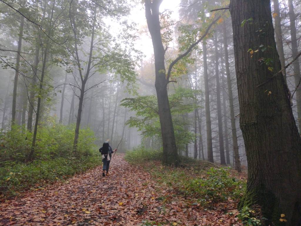 Vanuit een luxe woonkamer aanschouw ik een bijna horizontale regenstorm buiten. Wij zitten gelukkig droog, in een groot café aan de overkant van de weg. Drie dagen geleden was het 17 oktober, en precies een jaar geleden zaten Zora en ik toen in de trein naar Limburg. We gingen de Dutch Mountain Trail (DMT) lopen en hadden wollen rokken mee en thermo-ondergoed, maar het bleek een snikhete week te worden. We liepen zelfs in ons hempje!