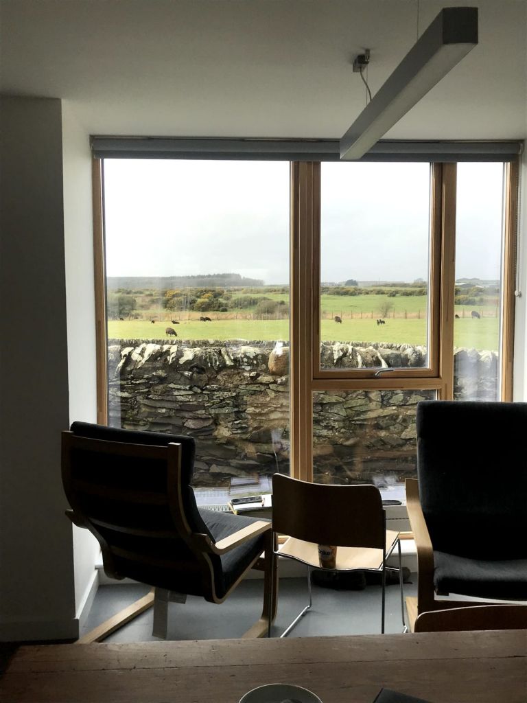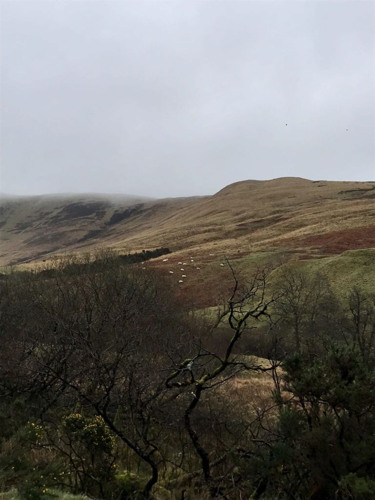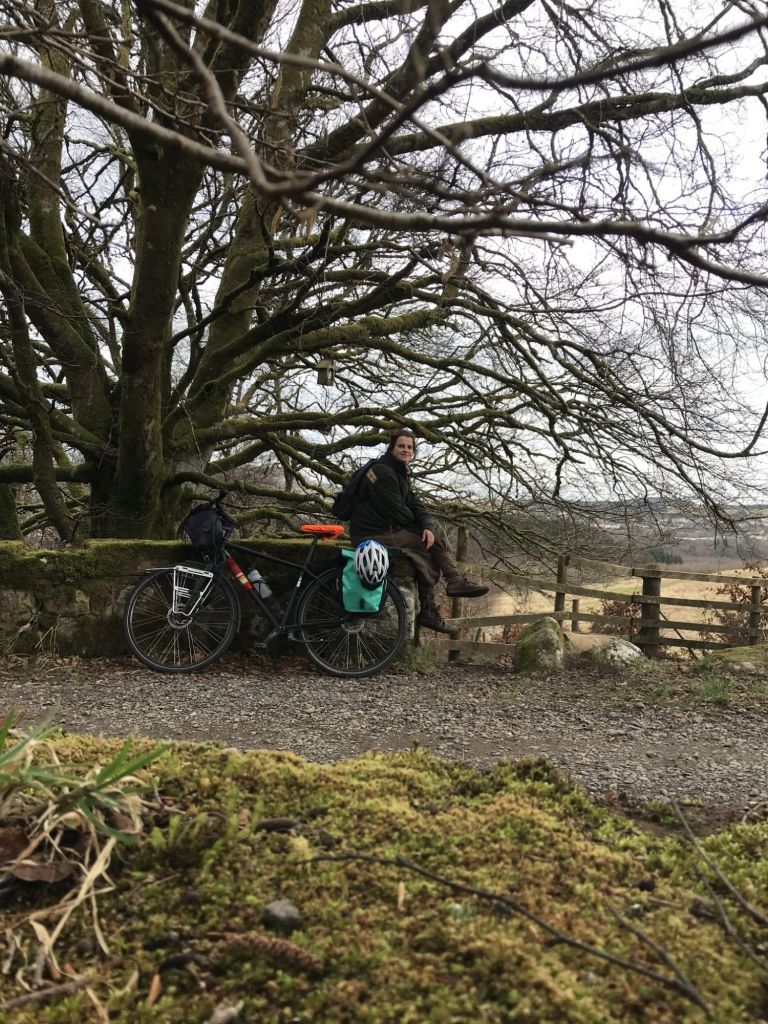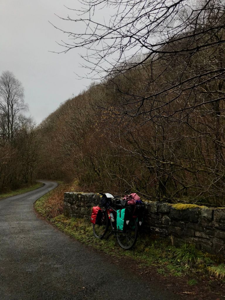 De timing van mijn bezoek was nogal absurd. Twee dagen voor mijn aankomst hoorde ik dat het niet goed ging met mijn oma en de tweede dag bij mijn tante overleed mijn oma dan ook. Het was heel fijn om met mijn tante over familie te kunnen praten en mijn oma te herinneren, die weer haar tante was. Bovendien woont ze redelijk dichtbij Glasgow en zou ik heen en weer kunnen naar Nederland terwijl mijn fiets bij hun kon blijven. Het bezoek duurde dan ook langer dan gepland – afgestemd op een gunstige vlucht naar NL – en na vijf nachten bracht mijn oom me naar het treinstation. De afgelopen dagen waren gevuld met heel veel lezen, wandelen en fietsen in de prachtige heuvelachtige omgeving, kletsen met mijn oom en tante, en verwend worden met verse eitjes, zelfgemaakte kefir, bakjes koffie, heerlijk avondeten en een warm bedje. De vier katten en het konijn in huis maakten het geheel allemaal nog kneuteriger en ik voelde me erg thuis. Een bijzonder gevoel om bij mensen die je nog nooit hebt ontmoet zo welkom te zijn en je zo op je gemak te voelen! Tijdens de stiltemomentjes voor het eten besefte ik me steeds weer wat een bijzondere situatie het was en voelde ik me enorm dankbaar.