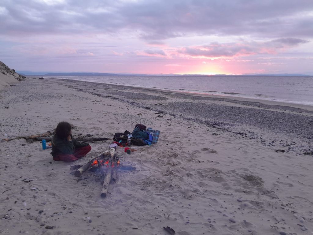 De volgende dag had ik een koffiedate met iemand die ook naar de klimaatdemonstratie in Aberdeen gaat, in juli. In een appgroep had ik gevraagd of iemand zin had om te hangen, zodat ik al wat bekende gezichten zou hebben als ik daarheen ging. Ze werkte in een outdoorwinkel en na de gezellige lunch vlakbij zei ze dat als ik nog spullen nodig had ik 20% korting kon krijgen! Ik had nog twee drybags nodig en vast nog wel andere leuke spulletjes, en terwijl ik stond te neuzen viel mijn oog op een bivvy bag, ook wel bivakzak, en precies degene die ik in Nederland al een keer had willen bestellen. Een bivvy bag is een soort water- en winddichte slaapzak die je om je hele slaapsysteem doet ter vervanging van een tent. Je slaapt dan nog meer buiten! Je hebt ze ook met een klein tentstokje bij je hoofd voor wat space, je hebt extreem waterdichte, of je hebt wat lichtgewichtere modellen tegen wind en condens als je onder een tarp slaapt. Ik zou heel graag meer willen oefenen met onder een tarp slapen – nóg meer buiten – en wilde dus een bag uit de laatse categorie. De Alpkit Hunka XL is betaalbaar en staat vet goed aangeschreven en is alleen in de UK verkrijgbaar én ik kreeg nu 20% korting. Fuck it, hij ging mee! Dit is niet gesponsord ofzo hoor 😂