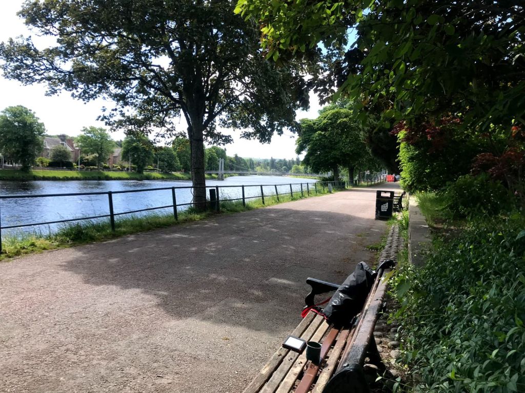 De camping is de perfecte plek om Inverness en omstreken een beetje af te struinen. Naar het centrum lopen is dertig minuutjes langs de Nes, een prachtige rivier. Onderweg haal ik een havercappucino in m’n zelf-meegebrachte beker en lees ik mijn boek op een bankje terwijl ik naar voorbijgangers loer. Ik kom regelmatig dezelfde mensen tegen: ‘oh daar is die zwangere vrouw weer met dat zoontje dat zo op haar lijkt’, ‘hee die knakker heb ik voorbij zien komen op Bumble!’, ‘ah dat is de barman van dat cafeetje’. Het ons-kent-ons-gevoel had maar een krap weekje nodig.