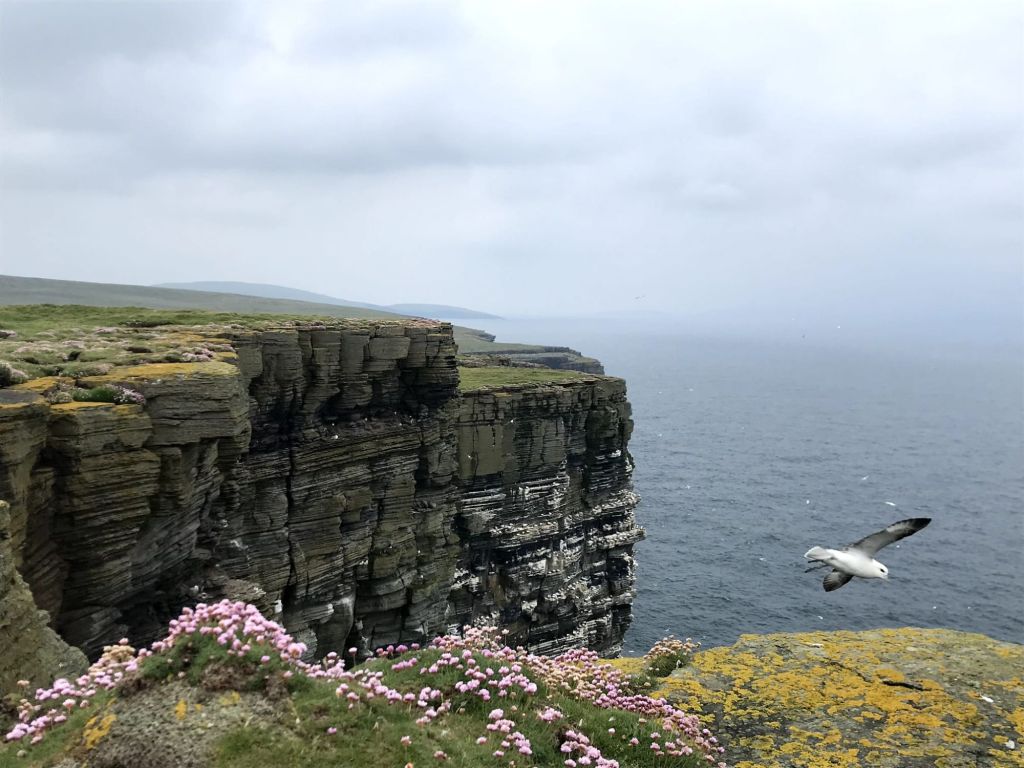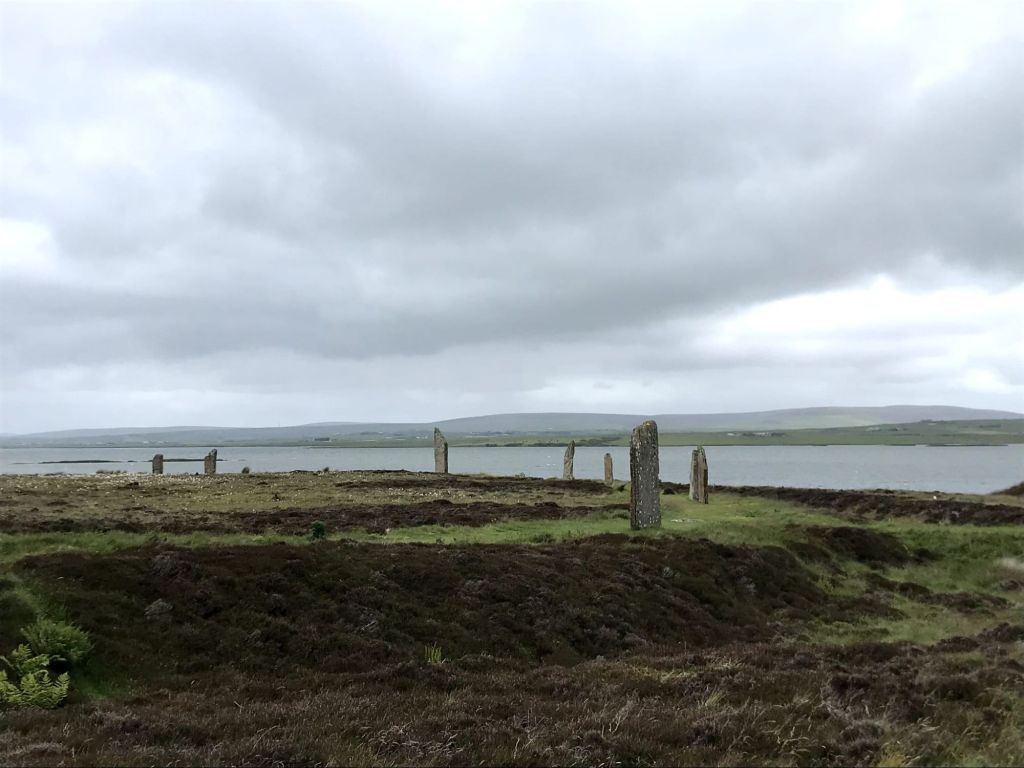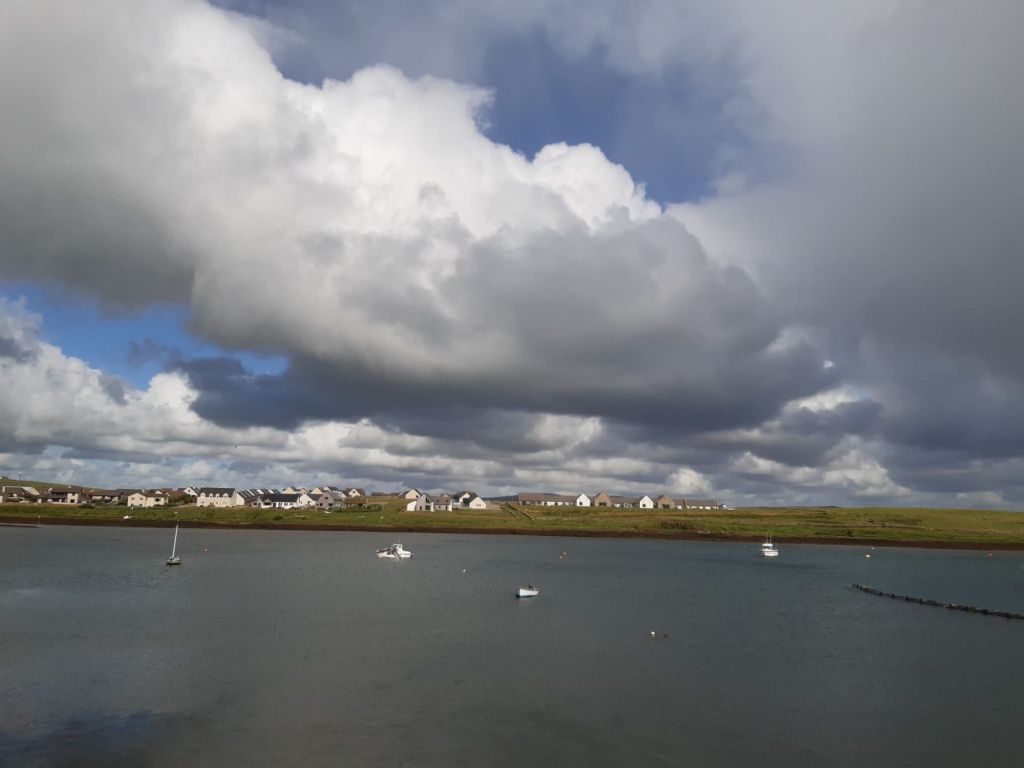 Mijn moeder is vorige week gearriveerd en we hebben in die zes dagen niet stilgezeten. Hoewel ik fysiek een beetje een slappe vaatdoek was (lees: kotsen, hoesten, brandende ogen) zijn we naar het verre Noorden afgereisd: de Orkneys. Een eilandengroep boven de Noordkust van het vasteland van Schotland. We zitten bijna even hoog als Bergen in Noorwegen! Noorderlicht zou je hier technisch gezien dus ook kunnen waarnemen (hoewel dat sinds kort ook in Nederland kan, schijnt?!) maar met dit weer gaat dat nooit lukken. Het is tien graden en waait knoerthard en de lucht is één en al grijze wolk. En juist nú zijn wij op een eilandengroep waar geen boom te bekennen is. Typisch.
