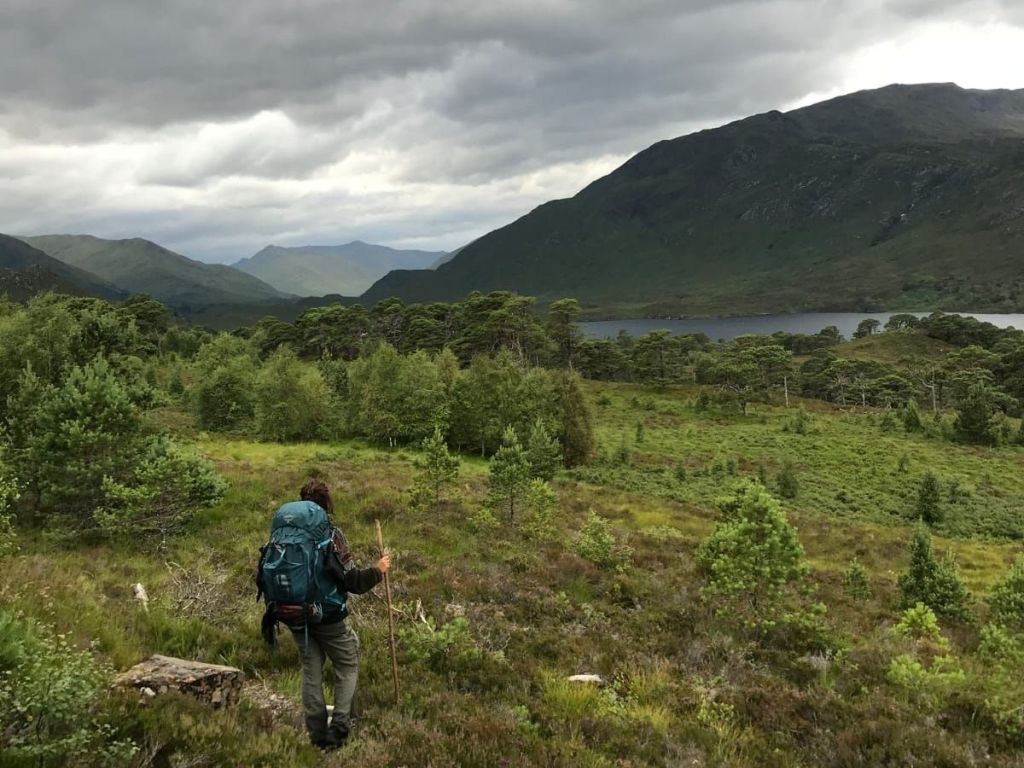 Ik was het fietsen zat, pakte een trein terug vanuit Edinburgh naar Inverness en bereidde mezelf voor op een wandeltocht. Verslaafd als ik ben aan fietsen vind ik wandelen altijd heel moeilijk klinken, maar ik had toch wel zin in off-road paadjes en lekkere bergen zonder het gezeik van asfalt met auto’s. Er zijn ontzettend veel opties vanuit Inverness, maar ik besloot laagdrempelig te beginnen. Een route van vijf dagen met wel klimmetjes, maar voornamelijk door de vallei. Ik leende een backpack van een local, kocht droogmaaltijden en vertrok. Wat een heerlijk vrij gevoel met alleen zo’n rugzakkie!