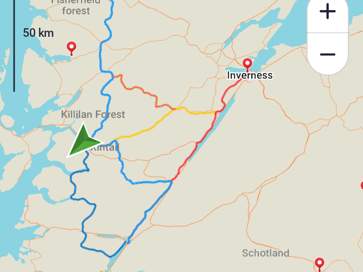 Geel: Affric Kintail Way (overlap met lichtblauw)