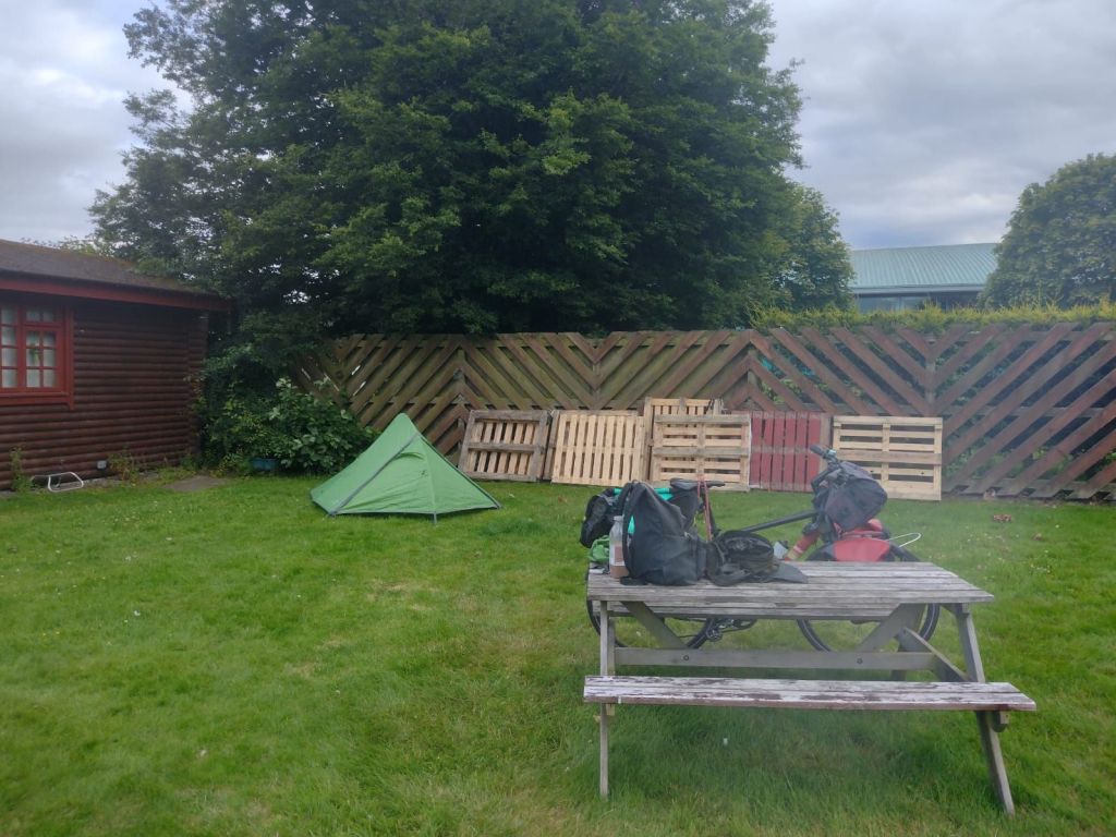 Inverness, mijn thuis in Schotland. Elke keer ben ik weer blij als mijn tentje op de camping staat op zijn vaste plekje. In het hoekje achter de receptie, met net een beetje schaduw, zodat ik bij zonnig weer niet stik in de tent, en naast de waterbak voor de eenden. Oja, en de poes loopt hier ook regelmatig langs en komt soms in de tent zitten. Ik hoor een harde zoem van de sporthal achter de camping, maar het is een constant geluid dus het boeit me niet zo. Het trekkersveldje die zich een stuk verderop achter een boomrand bevindt is qua schaduw beter en is verder weg van alle campers, maar is sfeerloos en dichtbij de weg. Nee, dit is mijn favoriete hoekje en zelfs met lawaai slaap ik hier goed. De meeuwen krijsen zodra het licht wordt de boel bij elkaar, maar het hoort er allemaal bij. Mijn stekkie in Inverness.