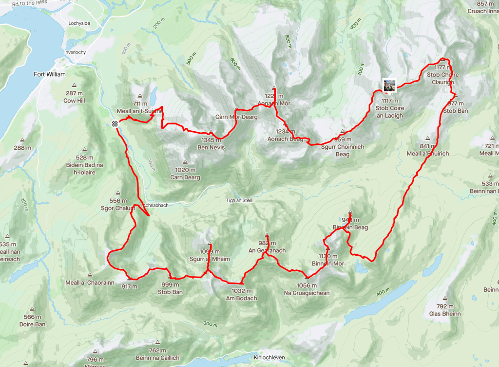 Ik besloot de eerste twee toppen van de Tranters Round te doen, dan kon ik de dag daarna misschien the Ring of Steall proberen, een brute ronde van 19 kilometer van de daaropvolgende munro’s. Eerst eens kijken hoe dit zou bevallen en dan kon the Ring altijd nog, stap voor stap. De aanlooproute voor deze eerste twee munro’s (Stob Ban en Mullach nan Coirean) was vijf kilometer en de route zelf 16, dus het zou een lange dag worden.