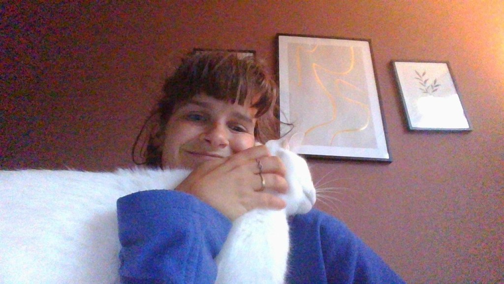 En nu het buiten regent dat het giet, de buurman in diezelfde regen vlaggetjes aan het ophangen is voor het straatfeest morgen, de kat door de vensterbank naar hem zit te loeren (ja, die sliep net nog op de bank maar nu niet meer) ben ik gewoon even zo blij met het leven! Wat een beetje veiligheid en warmte al wel niet met je gemoedstoestand doet (eh, ja, het is een van de basisbehoeften, dus makes sense).