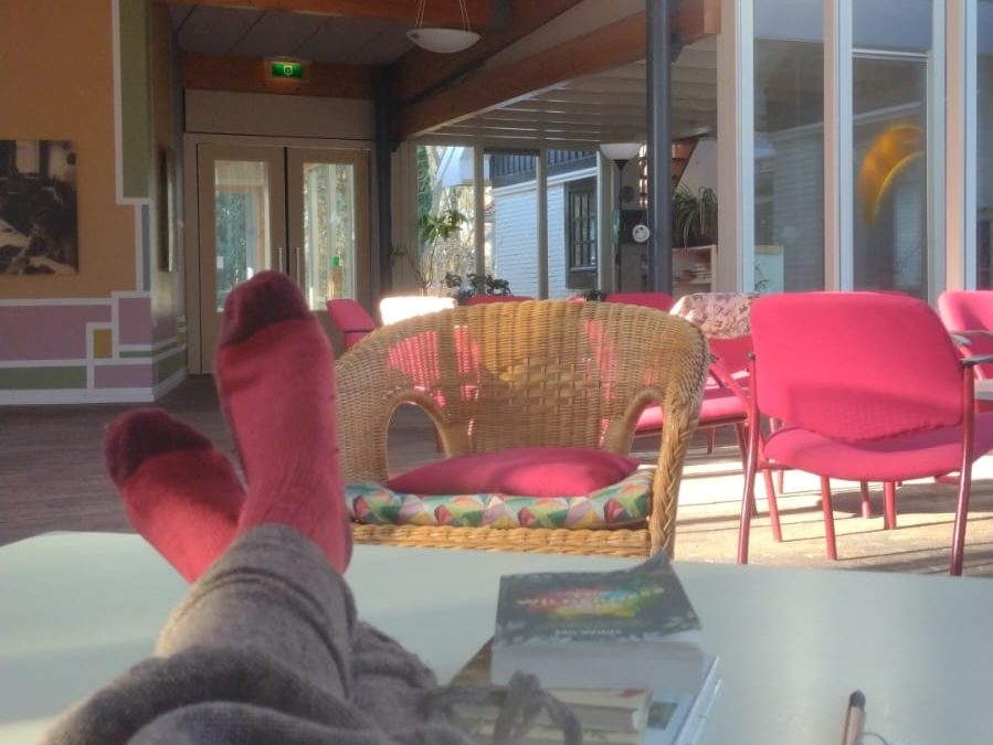 Met mijn nomadische reet zit ik weer eens in een Nivonhuis, degene waar ik een maand geleden met mijn moeder ook was. Het staat midden op de Drenthse hei en met dit stralende weer is het niet te doen zo mooi. Terwijl ik net hardlopend wandelde – daarover zo meer – scheen de zon op mijn gezicht, zag ik in de verte de schapenkudde grazen en hoorde ik de koolmeesjes fluiten. Ik liep op een prachtig paadje met oude eiken en het pelgrimsgevoel overviel me opeens compleet en dus moest ik huilen. Het was de perfecte dag om je rugzak op te doen, een pijpje in je mond te steken en fluitend de wereld in te trekken.