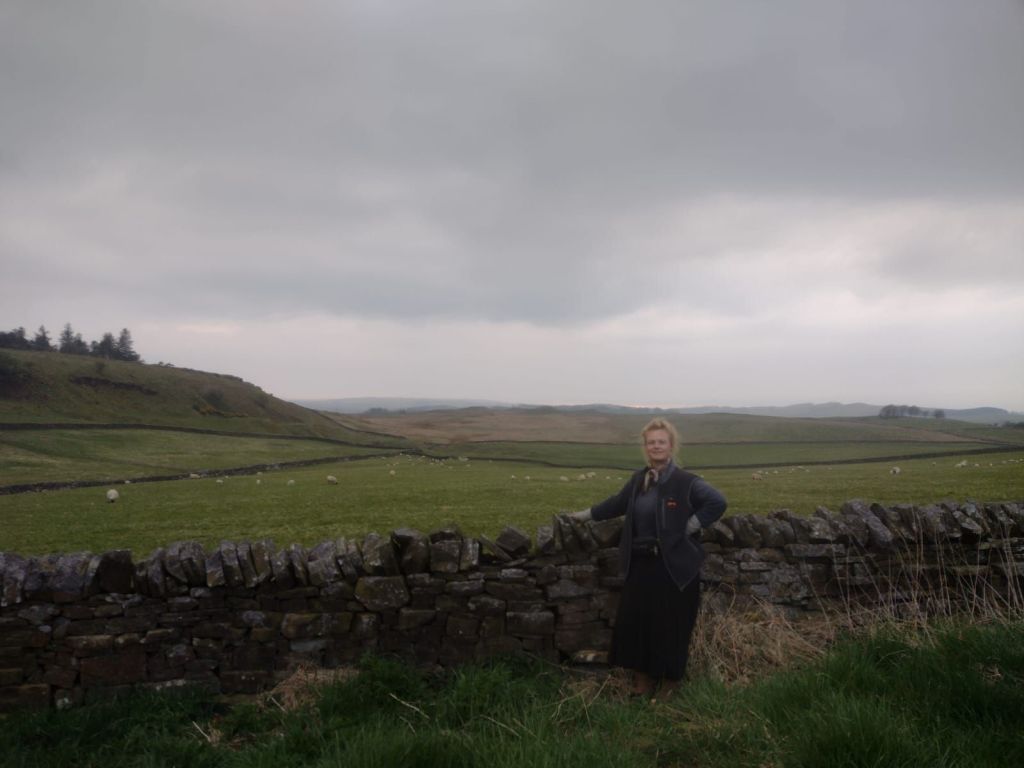 Vorig jaar fietste ik in maart de boot af, Newcastle door, om een half jaar door Schotland rond te gaan trekken met mijn tent. De route leidde eerst langs deze Hadrian’s Wall en nu zitten we in hetzelfde informatiecentrum waar ik op de tweede dag van mijn tocht koud en verkleumd mezelf heb opgewarmd. We consumeren nu wat in het café, terwijl ik toen mijn eigen bakkie op de picknickbank buiten zette.