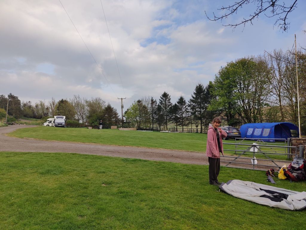 Na weer een prachtige wandeldag kwamen we vermoeid aan in een schattig dorpje. Eenmaal neergestreken op de groene camping besloten we eigenlijk al een beetje: we kappen er hier mee. De etappes erna zouden heftig zijn en we konden zo de kale bergen opkijken. We hadden totaal geen zin in dat open, winderige, hoge landschap en weer dágen zonder supermarkt. Ons eten was nu al op en er was hier ook geen winkel. En elke keer als we dan weer inslaan is die tas zo belachelijk zwaar. Het waren twee etappes, maar voor ons vier dagen, naar de beroemde Hadrian’s Wall (een oud romeins muurtje). En op zich hadden we wel zin in die plek, er gebeurde weer wat. Een informatiecentrum, een beetje toerisme, leuke pubs. En er ging ook een trein en bus naartoe vanaf waar we nu waren. Dus deden we dat.