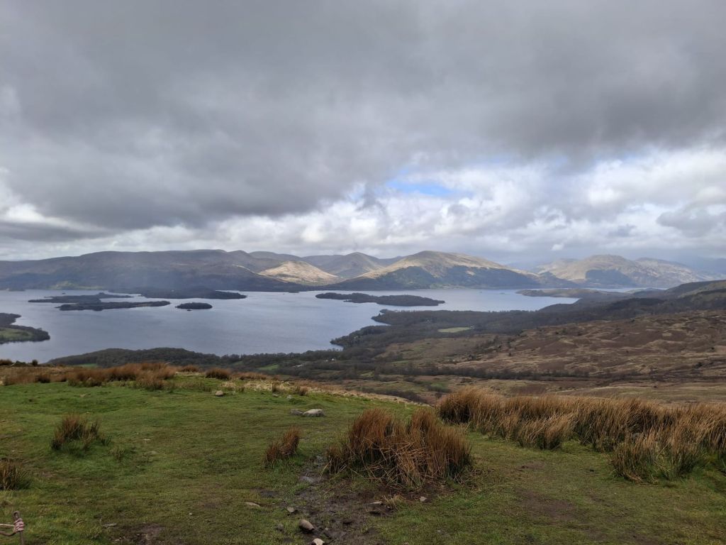 We hoefden maar 12 kilometer, maar vonden dat zat voor een tweede dag. Na de regen die ochtend hadden we eigenlijk nauwelijks meer druppels gehad en wel zon, wat een geluk!  We gingen een toeristische heuvel over met prachtig uitzicht, en het afdalen was weer even wennen voor onze voetjes. Toen we op ons eindpunt aankwamen vonden we dan ook dat we heel veel suiker hadden verdiend en namen een warme choco met marshmellows in een heerlijk Schotse inn. We zaten al continu te bediscussiëren wat we verder nog aan boodschappen nodig hadden, want na vandaag hebben we een paar dagen geen winkel. Ik ben heel erg team: opeten wat je mee hebt, want vaak neem je uit angst teveel eten mee en eet je de helft niet op omdat het minder smakelijk is. Ik heb bijvoorbeeld een tube vegapaté in mijn tas die we nog niet aangeraakt hebben en een blok kaas die op moet. Uiteindelijk ging mijn moeder akkoord, alhoewel zij wel zin had in iets extra’s. Maar uiteindelijk was ik het die de dorpswinkel verliet met een zak snoep. Typisch.